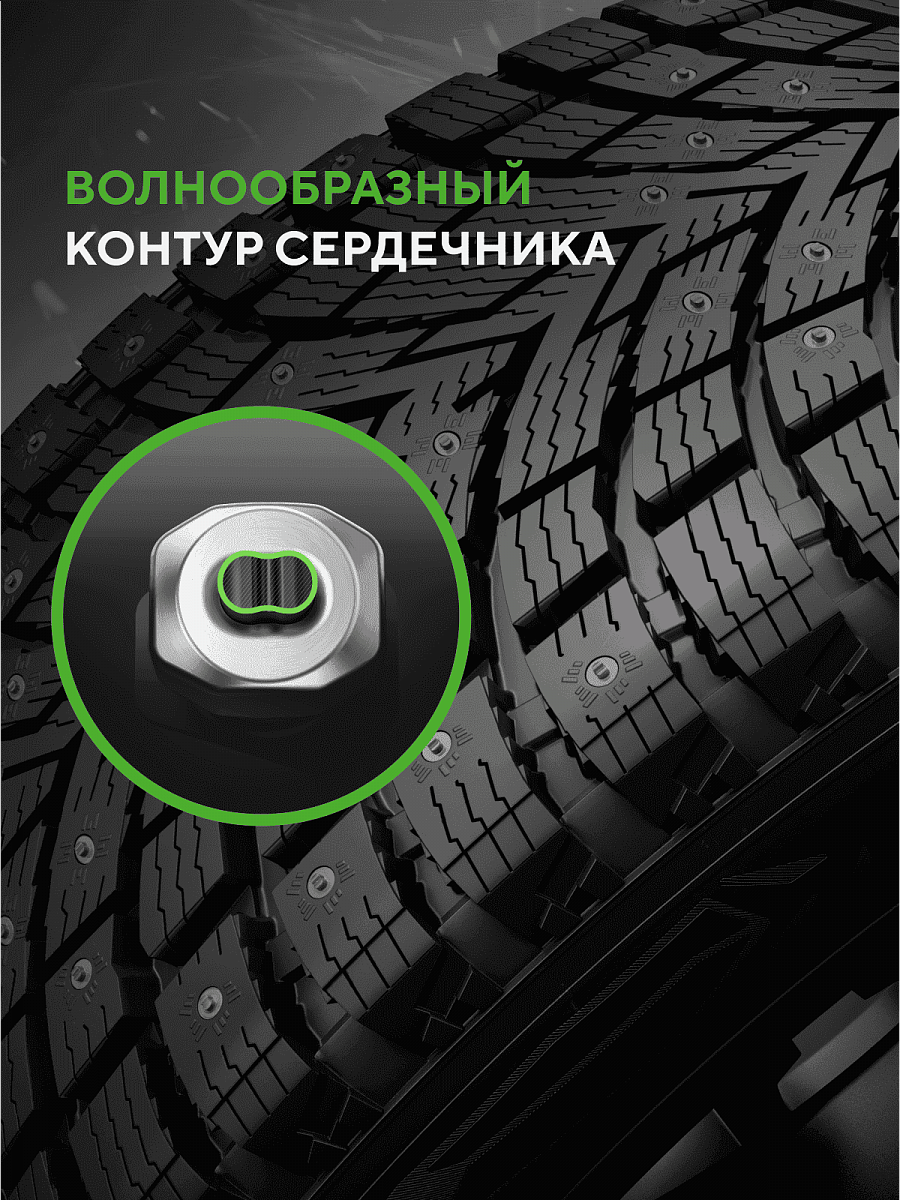 Предсказуемое торможение и стабильное управление достигается за счет двойной ошиповки DoubleBite и протектору с 3D-ламелями ZiLock. Благодаря специально разработанной резиновой смеси GC Mix управляемость сохраняется даже при низких температурах. Шипованные шины Ikon Autograph Ice 10 созданы для тех, кто ценит контроль и стабильность в зимних условиях. Прочная и надежная двойная ошиповка DoubleBite в сочетании с инновационной формой сердечника обеспечивают надежное сцепление как при разгоне и торможении, так и в поворотах на льду и снегу. Усиленная фиксация шипов значительно продлевает период эксплуатации шин. Качественные материалы повышают износостойкость шины и сохраняют надежное сцепление