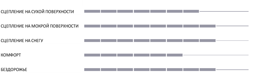 2.       НЕРАВНОМЕРНО РАСПОЛОЖЕННЫЕ БЛОКИ ПРОТЕКТОРА С ОСТРЫМИ КРАЯМИ - сцепление на бездорожье (снег, мокрая трава и грязь)