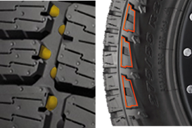 2.       НЕРАВНОМЕРНО РАСПОЛОЖЕННЫЕ БЛОКИ ПРОТЕКТОРА С ОСТРЫМИ КРАЯМИ - сцепление на бездорожье (снег, мокрая трава и грязь)