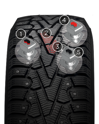 3.       Широкое основание шипа гарантирует стабильность характеристик на льду и оптимизированное распределение нагрузки.